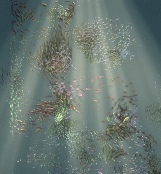 Artworks sind eindrucksvolle Inszenierungen, die das künstlerische Potenzial des Kosmografen voll ausschöpfen. Durch eine kreative Vielfalt von Videos und generativen Anwendungen bieten diese Artworks eine tiefgehende Auseinandersetzung mit festgelegten Themen und spiegeln die Philosophie und das Programm des Humboldt Forums wider. Sie wecken Neugier auf die Inhalte des Hauses und bieten dabei eine künstlerische Interpretation, die weit über klassische Trailer oder Ankündigungen hinausgeht.