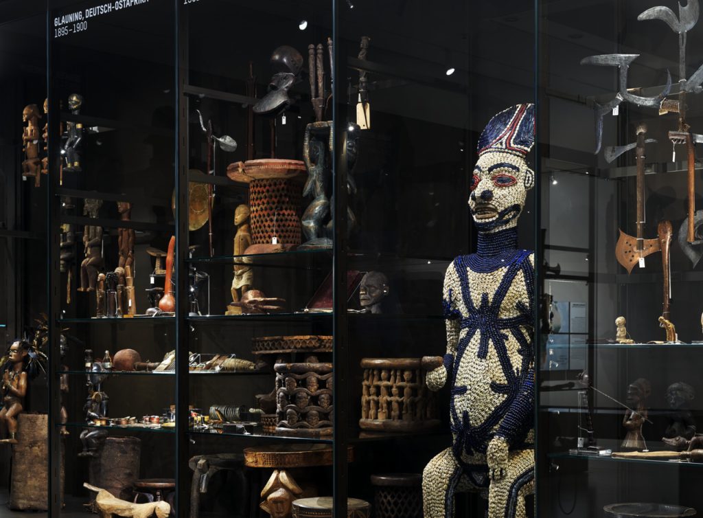 Die Exponate zeigen nicht nur, wie die Menschen in Afrika lebten, sie spiegeln ebenso die Weltanschauungen derjenigen wider, die sie sammelten und erwarben. Deshalb wird die Präsentation durch eine mediale Ebene mit Informationen zu den einzelnen Objekten, den Sammler*innen, der Erwerbungsgeschichte und den Sammlungskontexten ergänzt.