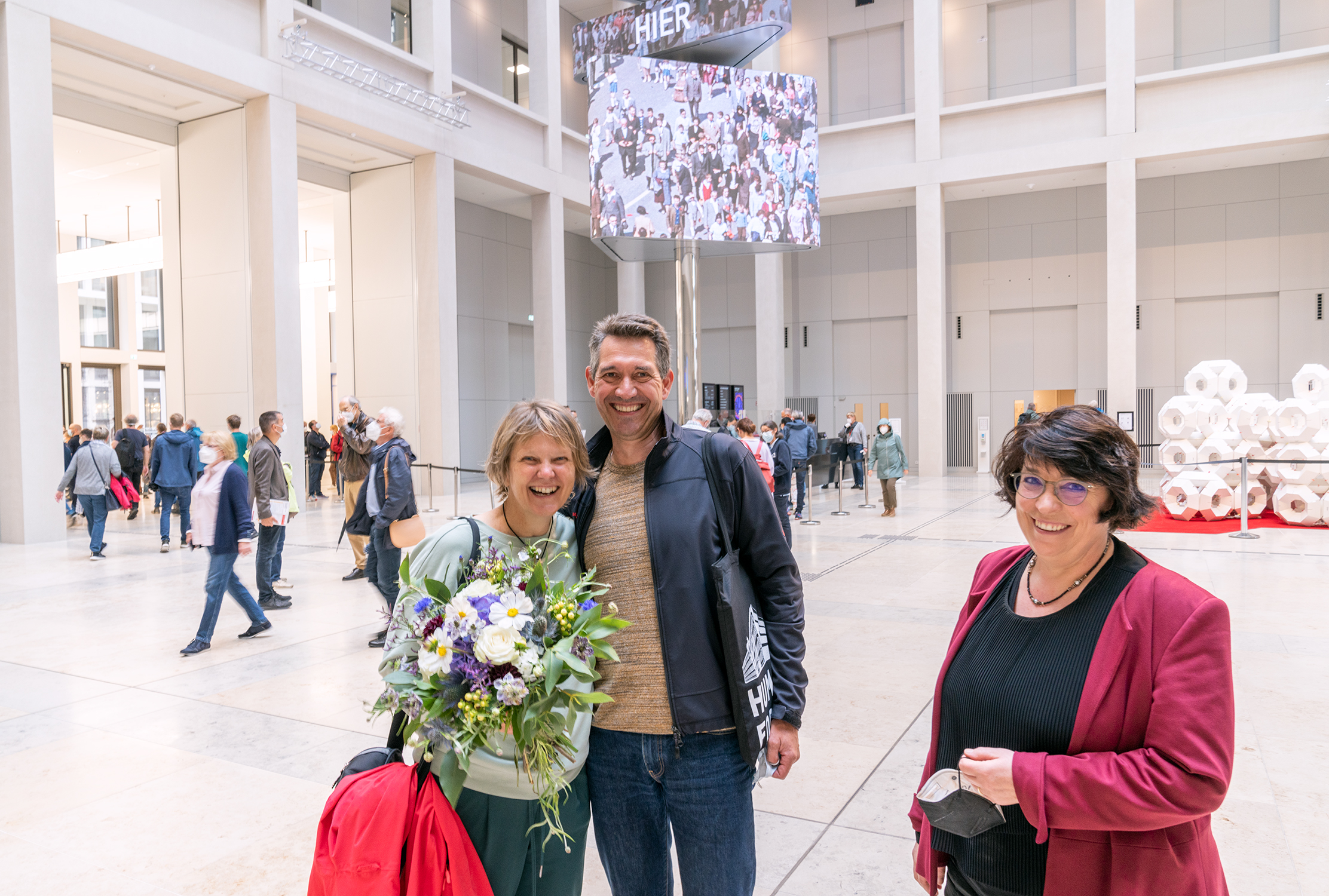 wurde die 100.000 Ausstellungsbesucher*in gezählt und von Vorständin Christine Rieffel-Braune begrüßt. Noch bis 12. November 2021 sind alle Ausstellungen kostenfrei. Tickets können online gebucht oder spontan an der Kasse erworben werden. Ohne Zeitfensterticket ist der Zugang zu den Präsentationen zu den Brüdern Humboldt im Foyer sowie zur Geschichte des Ortes im Skulpturensaal und Videopanorama möglich.