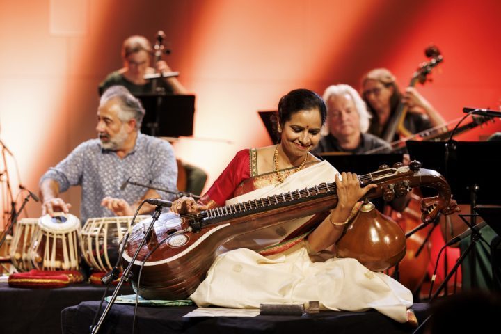 Gemeinsam mit Musiker*innen und Komponist*innen aus den eingeladenen Kulturen sucht das Orchester nach einer transkulturellen Praxis: Wie lassen sich neue Töne und hybride Formen finden, die sich dem Label der „Weltmusik“ entziehen? Welchen Gemeinsamkeiten gibt es zwischen Spiel- und Kompositionstechniken? Die Musiker*innen reagieren mit ihrem Projekt auf die Sammlungen des Ethnologischen Museums und des Museums für Asiatische Kunst, in der sich viele Instrumente und das Berliner Phonogramm-Archiv befinden. Im begleitenden Diskurs wenden die Künstler*innen gemeinsam mit dem Publikum den postkolonialen Blick auf die musikalische Praxis des europäischen Klassikbetriebs.