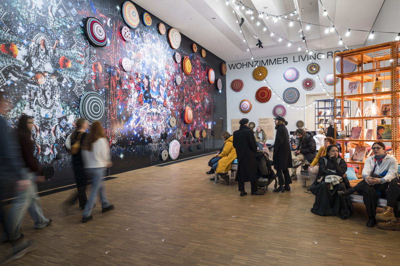 Die Wandcollage The Story of Waleka wurde vom Aliwaa Collective geschaffen. Das Aliwaa Collective besteht aus Sindri Gonzales Ipuana (Wayuu-Weberin aus Kolumbien), Stefannia Doria (Kuratorin aus Kolumbien) und Raquel van Haver (Künstlerin aus Kolumbien und den Niederlanden).