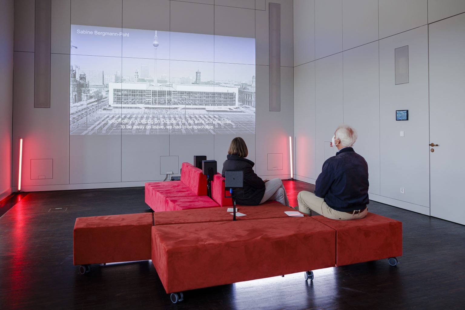 Der Samstag widmet sich dem Erinnerungsort Palast der Republik. Davon ausgehend werden drei verschiedene Zeitpunkte in der Palast-Geschichte filmisch präsentiert. Zum einen wird das Gebäude als Veranstaltungsort der Feierlichkeiten zum 40. Jahrestag zu einer wichtigen Station der Friedlichen Revolution. Zum anderen können Sie dem Gebäude 1991 begegnen, als es wie eine Zeitkapsel in der Mitte Berlins stand, mit der die neue Regierung nicht recht umzugehen wusste. Als drittes können Sie das Haus nach der Entfernung des Asbestes kennenlernen, während es von Künstler*innen genutzt und von vielen alten Bekannten wieder aufgesucht wurde. Alle drei Zeitpunkte markieren einen Bruchmoment in der verhältnismäßig kurzen, aber überaus bewegten Geschichte des Baus.