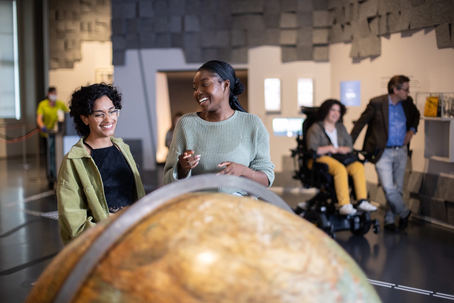 Nach einem einstündigen Rundgang durch BERLIN GLOBAL können Sie Beispiele aus den handlungsorientierten Workshops für Grundschüler*innen ganz praktisch im WELTSTUDIO ausprobieren. Hier erörtern Vermittler*innen, wie Kinder sich dem Thema „Berlin und die Welt“ nähern, globale Zusammenhänge kennenlernen und eigene