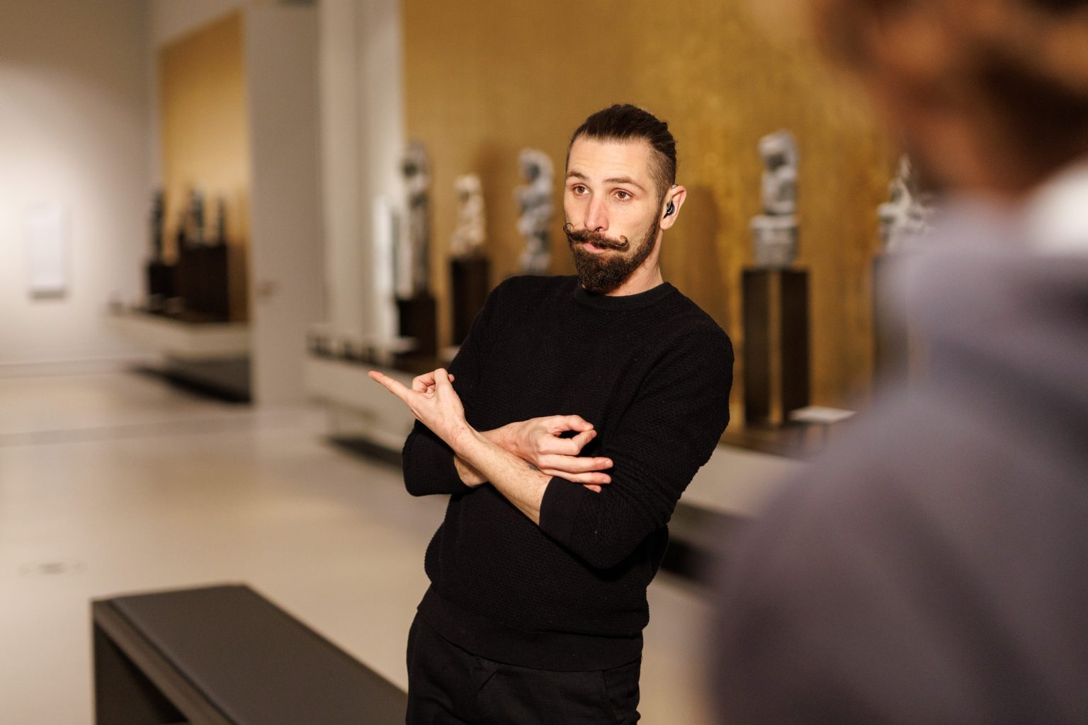 Gehörlosen und hörenden Menschen bietet dieser Rundgang einen sinnlichen Zugang zu den Sammlungen des Museums für Asiatische Kunst und des Ethnologischen Museums. Gehörlose und hörende Vermittler*innen führen dialogisch durch die neuen Ausstellungsbereiche und laden zum Erfahren und Mitdiskutieren ein.