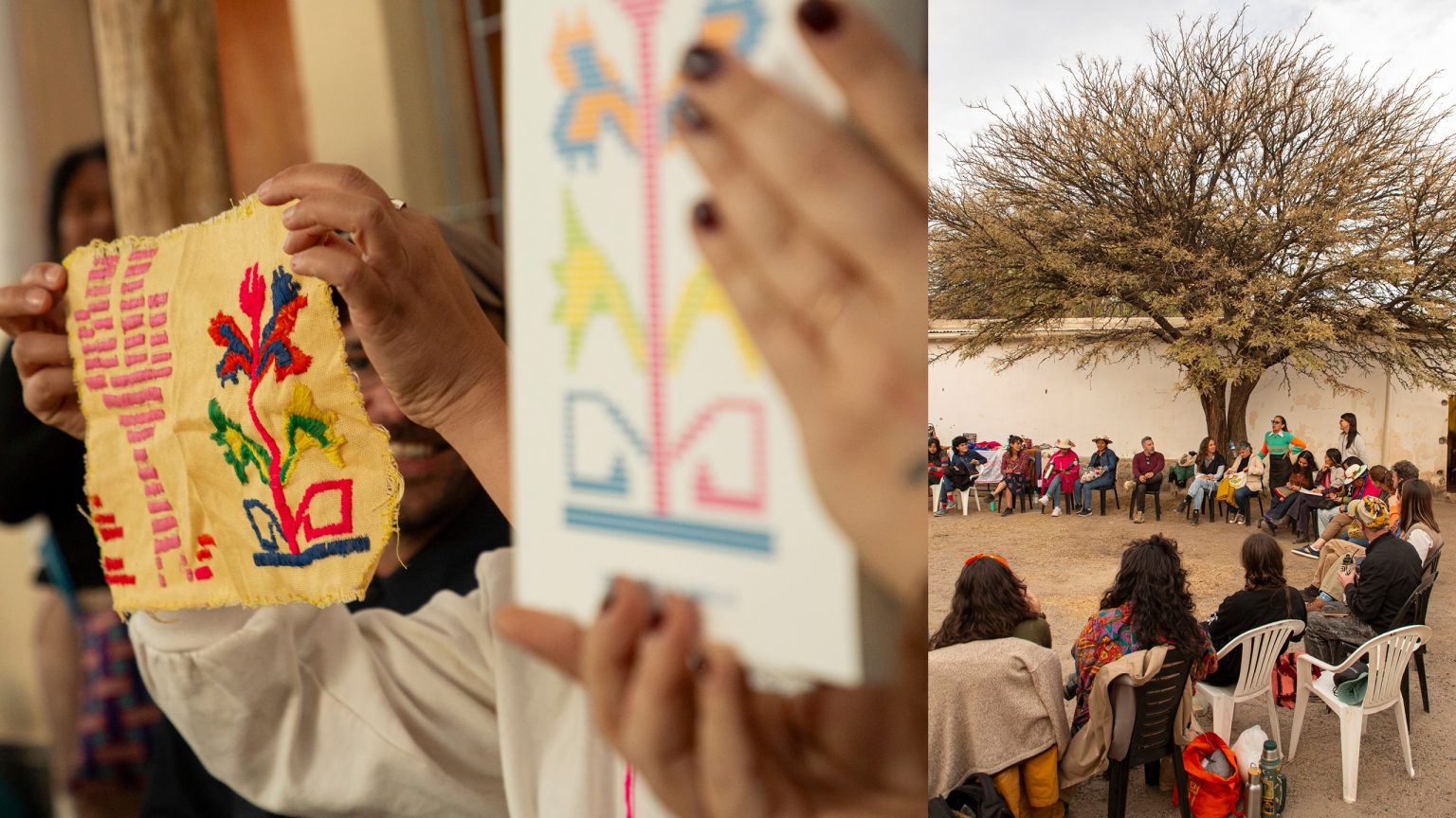 Die Unión Textiles Semillas (UTS) vereint fast 300 Weberinnen, Künstlerinnen und Aktivistinnen aus zwölf Gruppen indigener und ländlicher Gemeinschaften im Norden Argentiniens sowie eine Gruppe von Sembradoras – einem interkulturellen Kollektiv für Organisation und Forschung. Gegründet im Jahr 2023 verbindet die UTS die textile Praxis mit ökonomischer Selbstbestimmung, Wissensweitergabe und dem kollektiven Aufbau von Beziehungen, die auf Fürsorge und Zusammenarbeit beruhen.