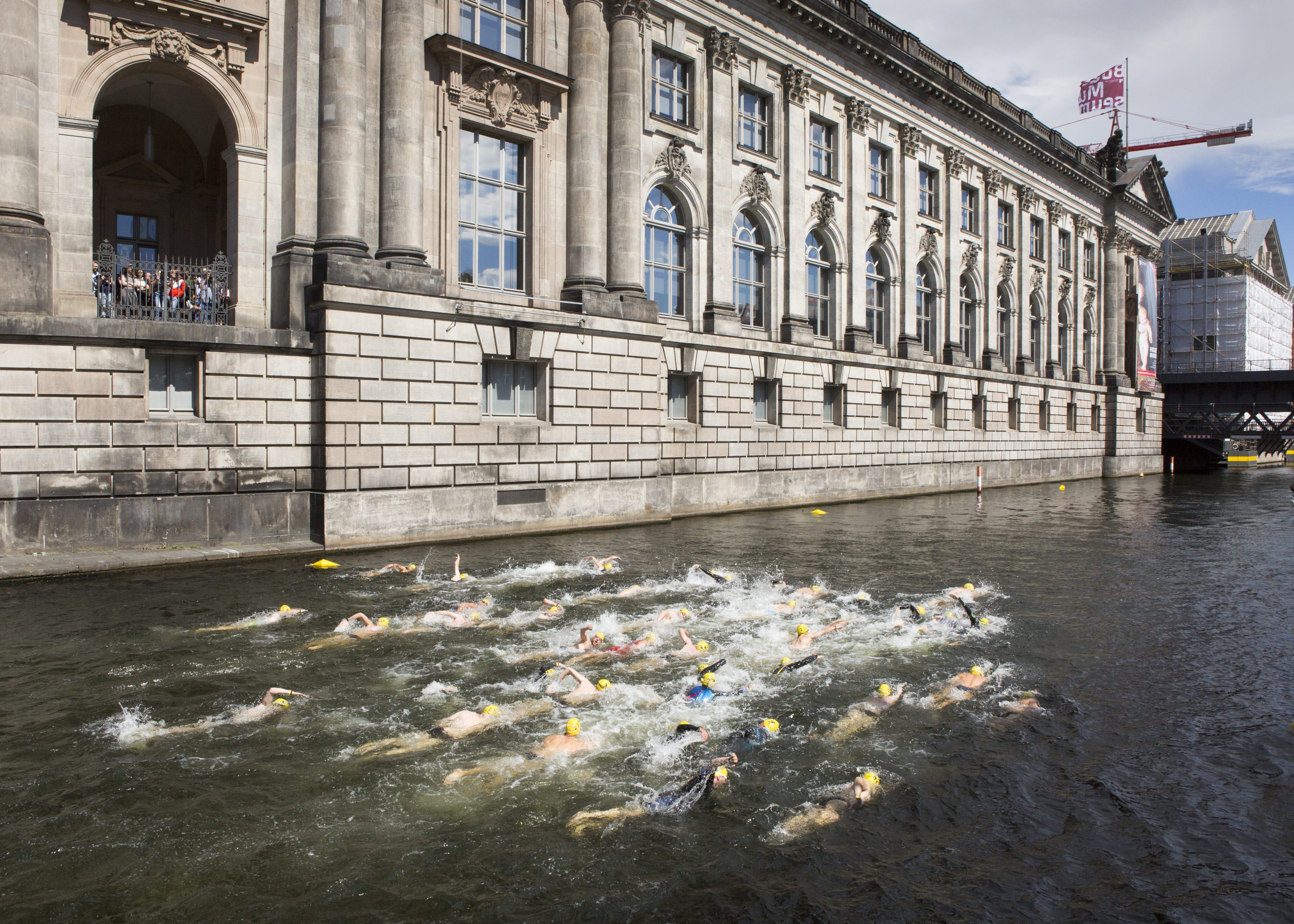 Öffentliches Baden im Fluss mitten in der Stadt: Darum geht es beim Projekt „Fluss Bad Berlin“. Ziel ist die Errichtung eines Flussbads am Kupfergraben – eine historisch keineswegs gänzlich neue Idee. Denn noch vor 200 Jahren gab es in Berlin zahlreiche Flussbäder, bis 1925 die letzte Badeanstalt aus hygienischen Gründen geschlossen wurde.