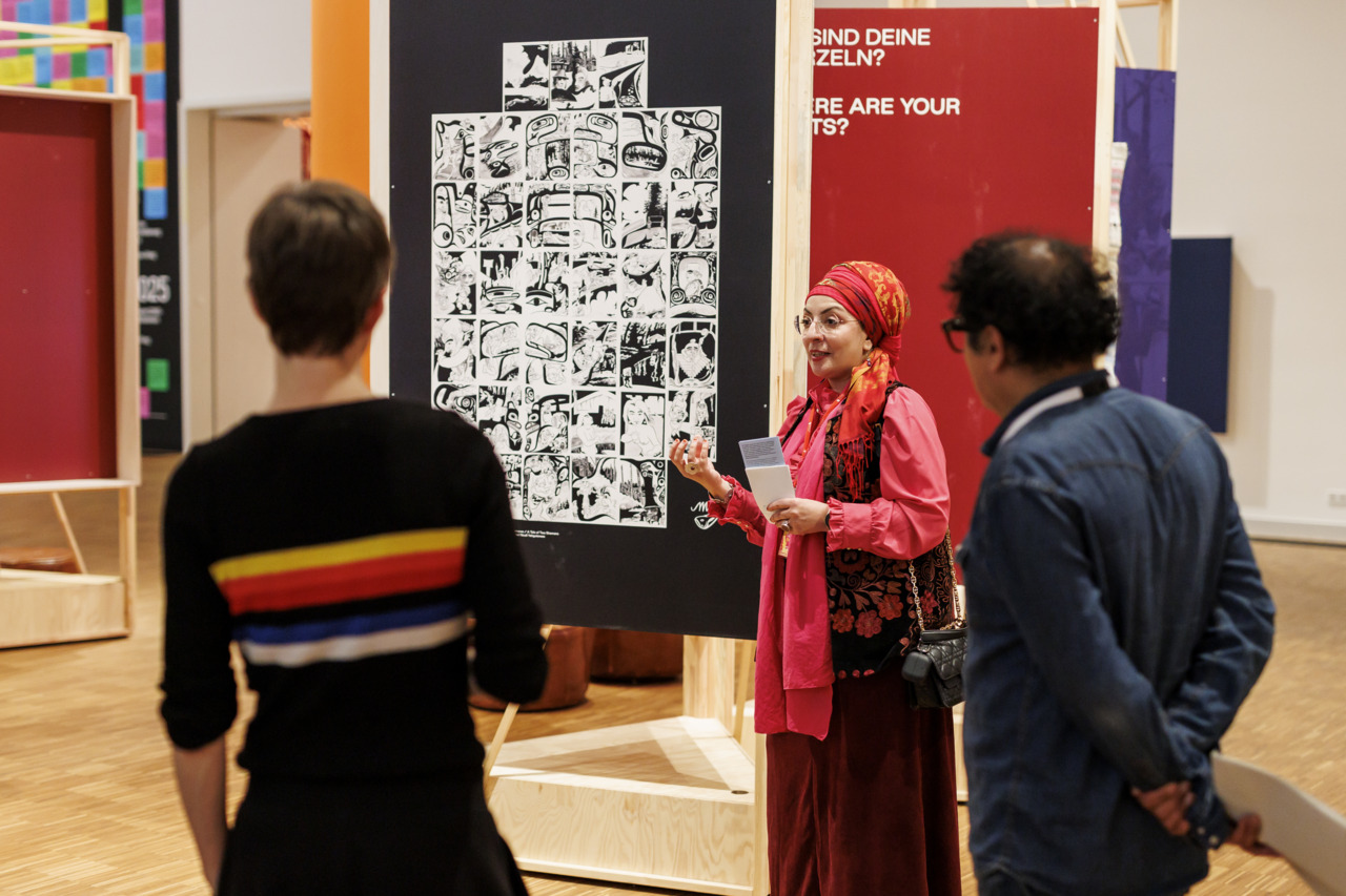 Feride Funda Gökçimen-Gençaslan beim Kurator*innengespräch "Was sind deine Wurzeln?" zum GCA Treffpunkt am Themenwochenende zur Eröffnung der Sonderausstellung "Beziehungsweise Familie / Family Matters"