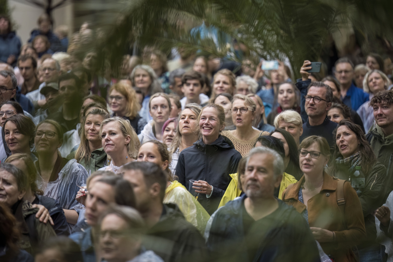 Die Beschäftigung der Chöre mit der laufenden Sonderausstellung Hin und weg. Der Palast der Republik ist Gegenwart setzt die dort angestoßene Diskussion um den Umgang mit deutsch-deutscher Geschichte auf künstlerischer Ebene fort, sowohl bei Einzelkonzerten als auch bei den gemeinsamen Auftritten aller Chöre im großen Foyer (Sonntag 14.00 & 16.30 Uhr), bei dem sich drei eigens für diesen Anlass neu arrangierte Songs dem Palast der Republik aus verschiedenen Perspektiven nähern.
