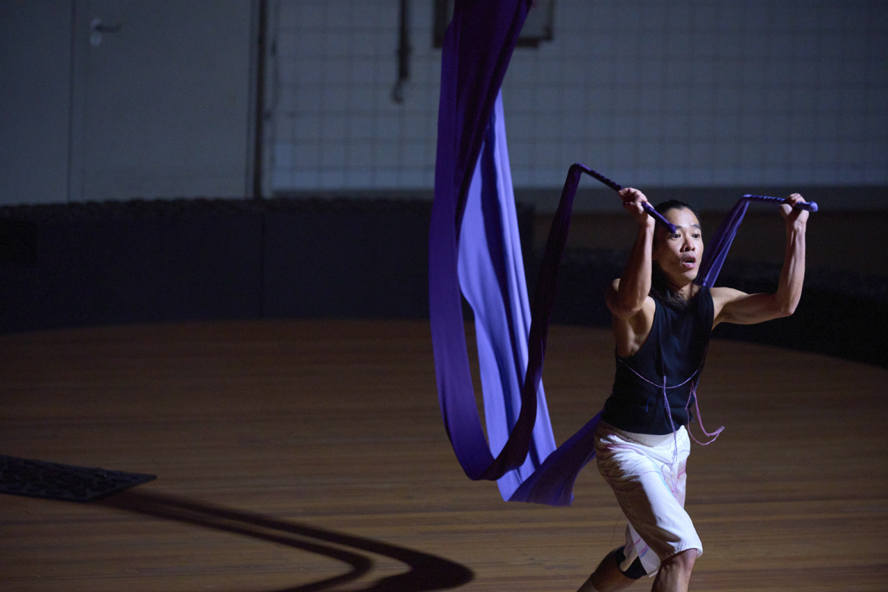 Gemeinsam mit vier Tänzer*innen und einem Sänger erkundet Raymond Liew Jin Pin, wie Menschen miteinander in Verbindung treten und wie Intimität als Raum zwischen Körpern, Stimmen und Erinnerungen entsteht. Mit farbigen Bändern knüpfen sie flüchtige Verbindungen im Raum. Sie machen Nähe und Distanz sichtbar und lassen immer wieder neue Beziehungen entstehen.