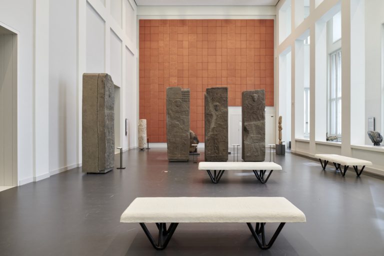 Along with the eight mighty Cotzumalhuapa stelae from 650-950 and other artefacts, a large-scale modern installation dominates the Mesoamerica gallery in the Humboldt Forum. Using 320 terracotta tiles, the Mexican artist Mariana Castillo Deball created the largest contemporary artwork within the presentations of the Ethnologisches Museum and the Museum für Asiatische Kunst. Her installation Codex Humboldt Fragment 1/Codex Azoyú Reverso almost completely covers the two-storey high southern end of the hall and was made possible by a donation from the “Friends of the Ethnologisches Museum”. In this work, the Berlin-based artist refers to two pictographic documents, the “Codex Humboldt Fragment 1” and “Codex Azoyú Reverso”. These are records of tax payments from the Tlapa region in Guerrero to the Aztec conquerors and rulers from the sixteenth century. Alexander von Humboldt acquired the “Codex Humboldt Fragment 1” during his visit to New Spain at the beginning of the nineteenth century. Today, the fragment is in the collection of the Staatsbibliothek zu Berlin (Berlin State Library). The Codex Azoyú Reverso was rediscovered in 1940 in Guerrero, Mexico.