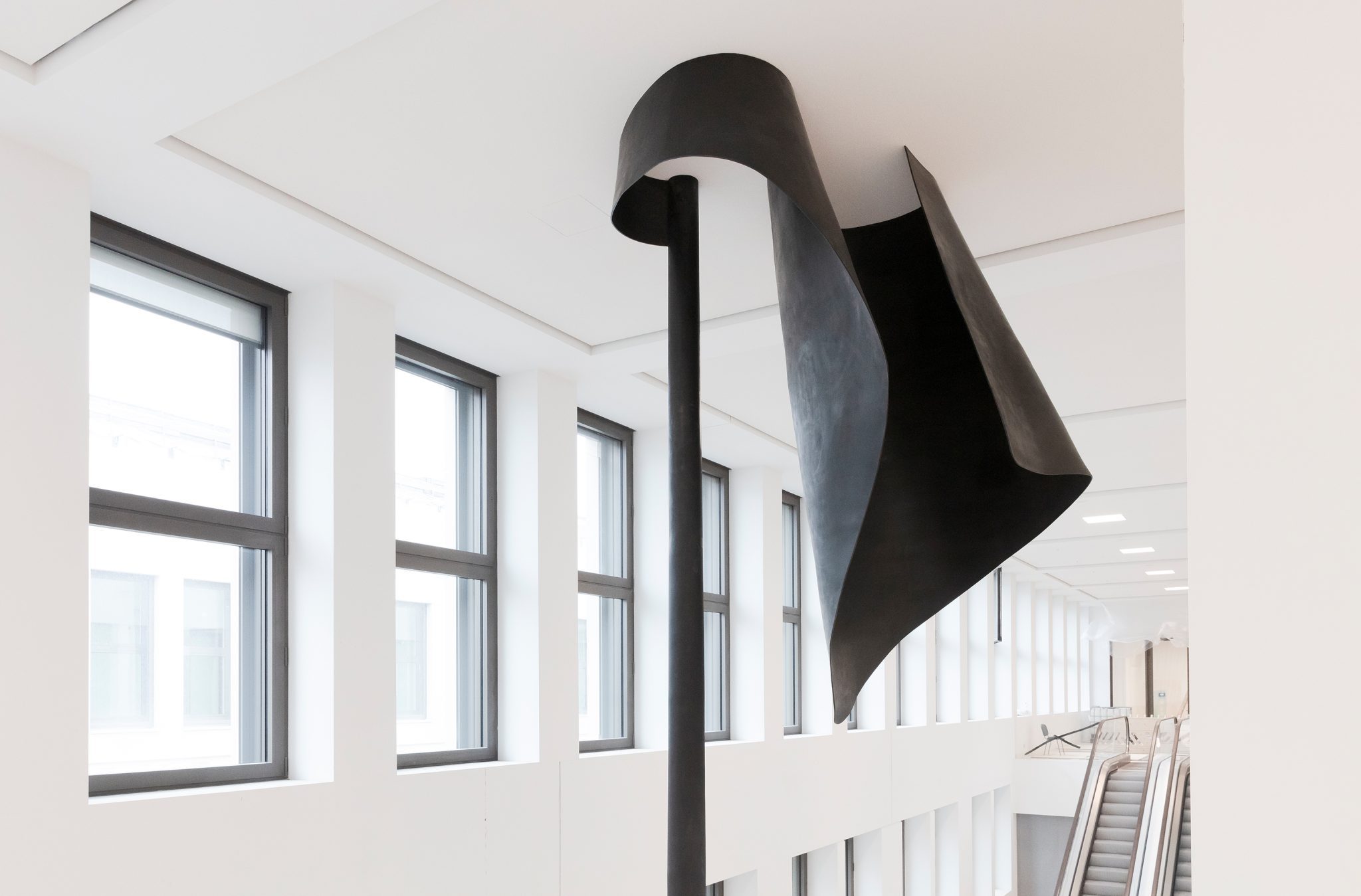 The part intended for the Humboldt Forum of the bronze sculpture Statue of Limitations of the artist Kang Sunkoo has been erected. With it, the first half of the two piece work has been completed successfully. Visitors will be able to see the work in the central stair hall which leads to the collections of the Ethnological Museum and the Museums for Asian Art on the 2nd and 3rd floor of the west wing, presumably from the spring of 2021. From then, the other half is also to be installed temporarily on Nachtigalplatz in the so called African Quarter in Berlin Wedding.