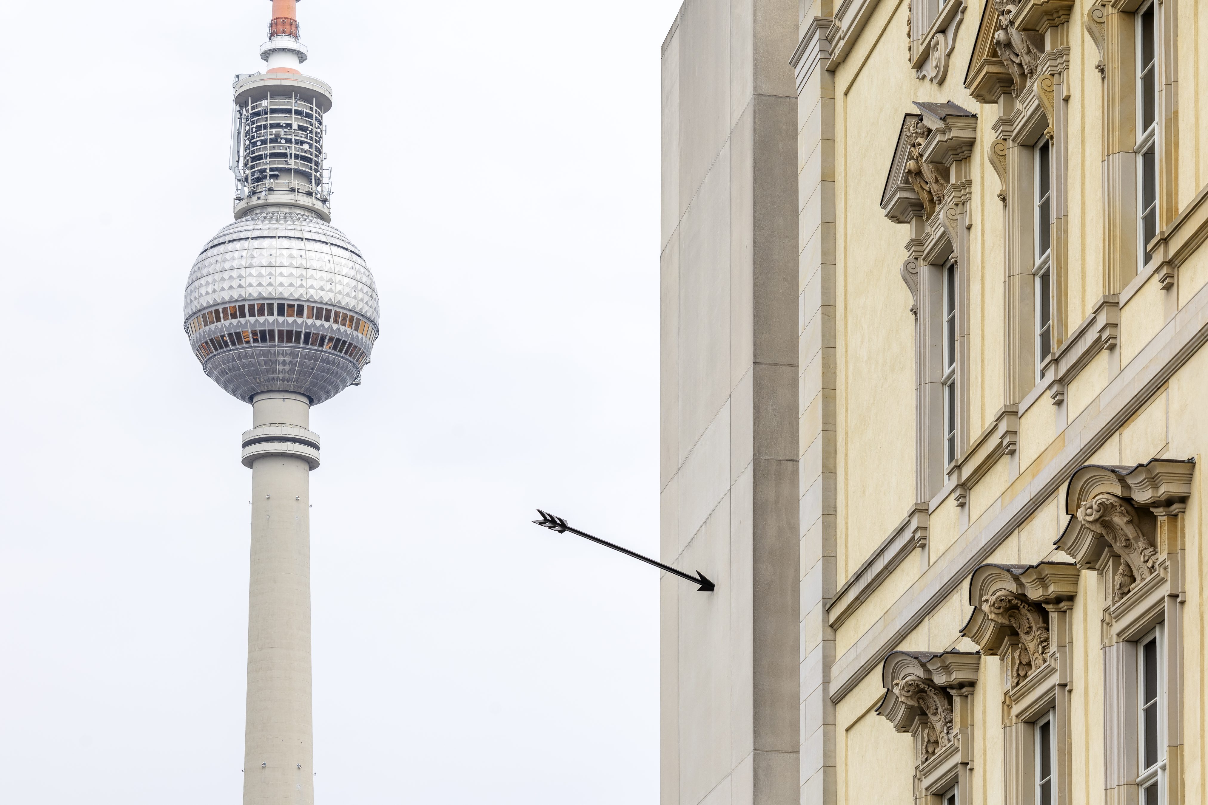 As of today, Südpfeil, a bronze-coloured sculpture by Berlin artist and architect Jürgen Mayer H. that is almost four metres in length, is gracing the exterior facade of the Humboldt Forum at its northern gable end. Inspired by the phenomenon of “arrow storks” – migratory birds pierced by African arrows who provided the first ever visible evidence of global avian migration paths – Sudpfeil touches upon cultural and colonial themes. This work of art is the eighth and final “Art in Architecture” project at the Humboldt Forum. Further information can be found in the press release or here.