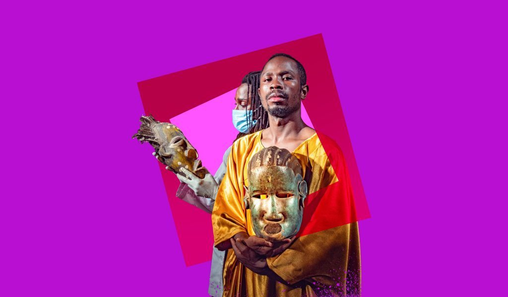 Vinyago combines exhibition, dance, music, and video art to create a gallery-filling installation. At its center are East African masks from the Ethnologisches Museum – objects that were originally used in a spiritual, performative context and are now kept and exhibited in the museum.