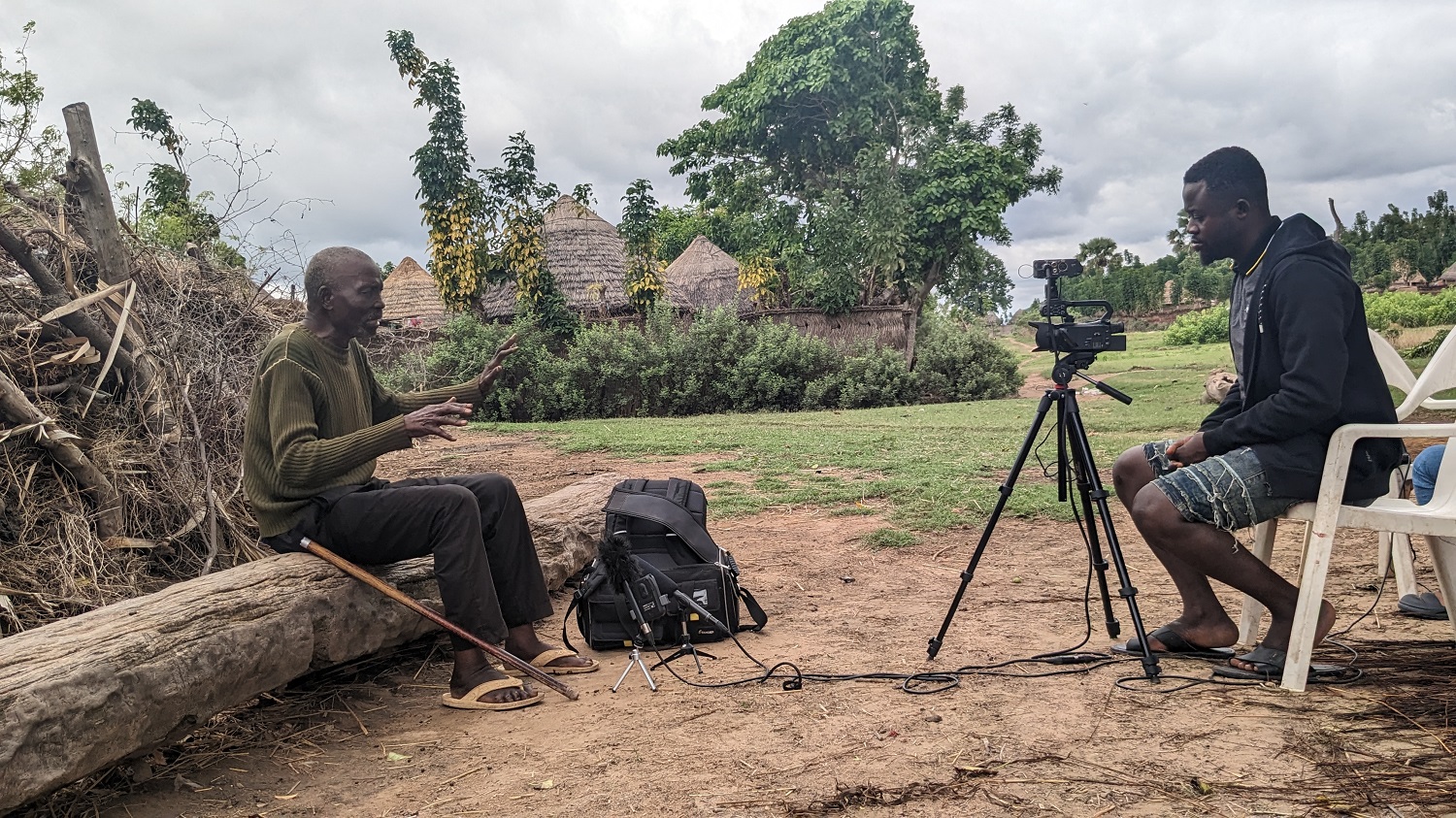 In the picture, Nlabephee Kefas Othaniel records his uncle Pa Kanawa Musa. He is documenting Dza, the language of his community spoken in Nigeria, a country with 600 languages. Less and less young people learn and speak Dza and less are familiar with the traditional way of life of the older generation. Nlabephee is the eldest and only one of six siblings who still speaks Dza, though only partially. His siblings speak mainly Hausa and some English. This reflects a general language loss affecting Dza communities.