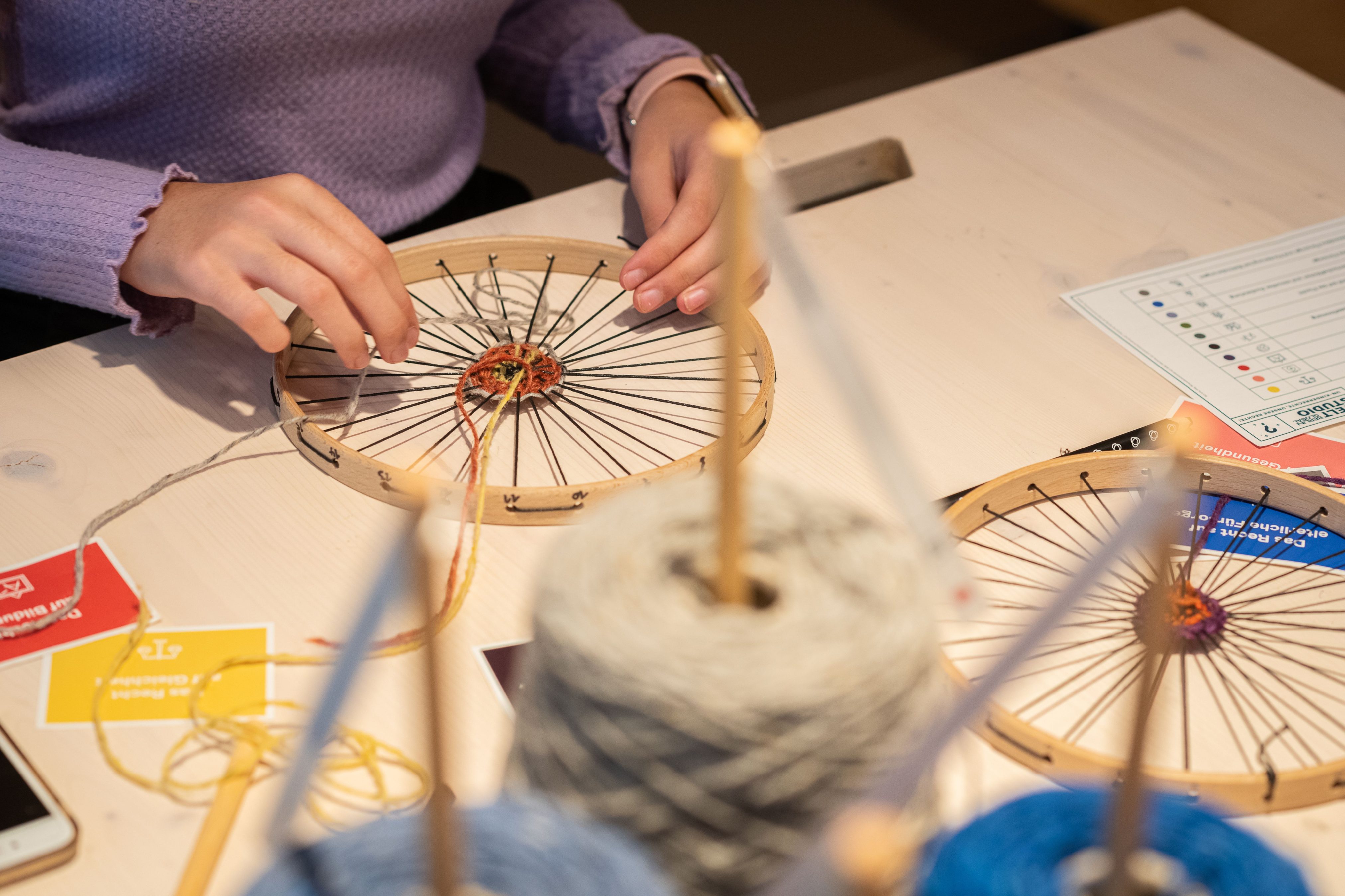 WORLD WEAVING celebrates its fourth year! In the WELTSTUDIO and in the lounge at BERLIN GLOBAL, everyone is once again invited to try out a wide variety of crafts. Weaving on small and large looms, knitting, embroidery, spinning wool and even tufting – there are no limits to your imagination. Our facilitators will help you bring your own ideas to life, and both beginners and experienced makers will find plenty to enjoy.