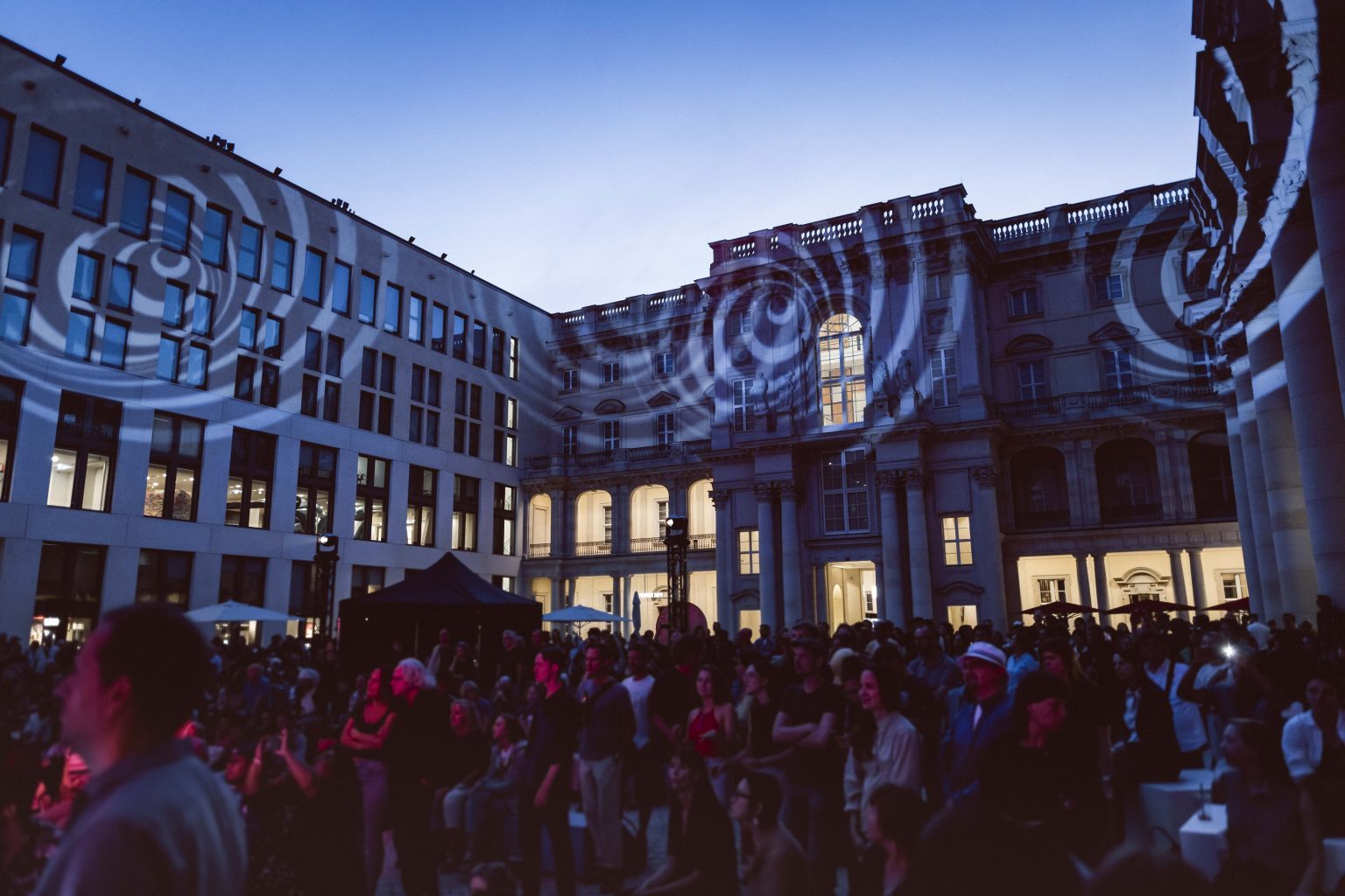 After dusk you will enter the Schlüter Courtyard through portals illuminated in rainbow colours, which as always invites you to linger. You will be able to see a concert of light shooting its beams far into the Berlin night sky from afar. The air-conditioned Foyer invites you to dance or chill to the rhythms of DJ Ben Olayinka during this long night. Enjoy a digital sea of colours played out for you by our Kosmograf.