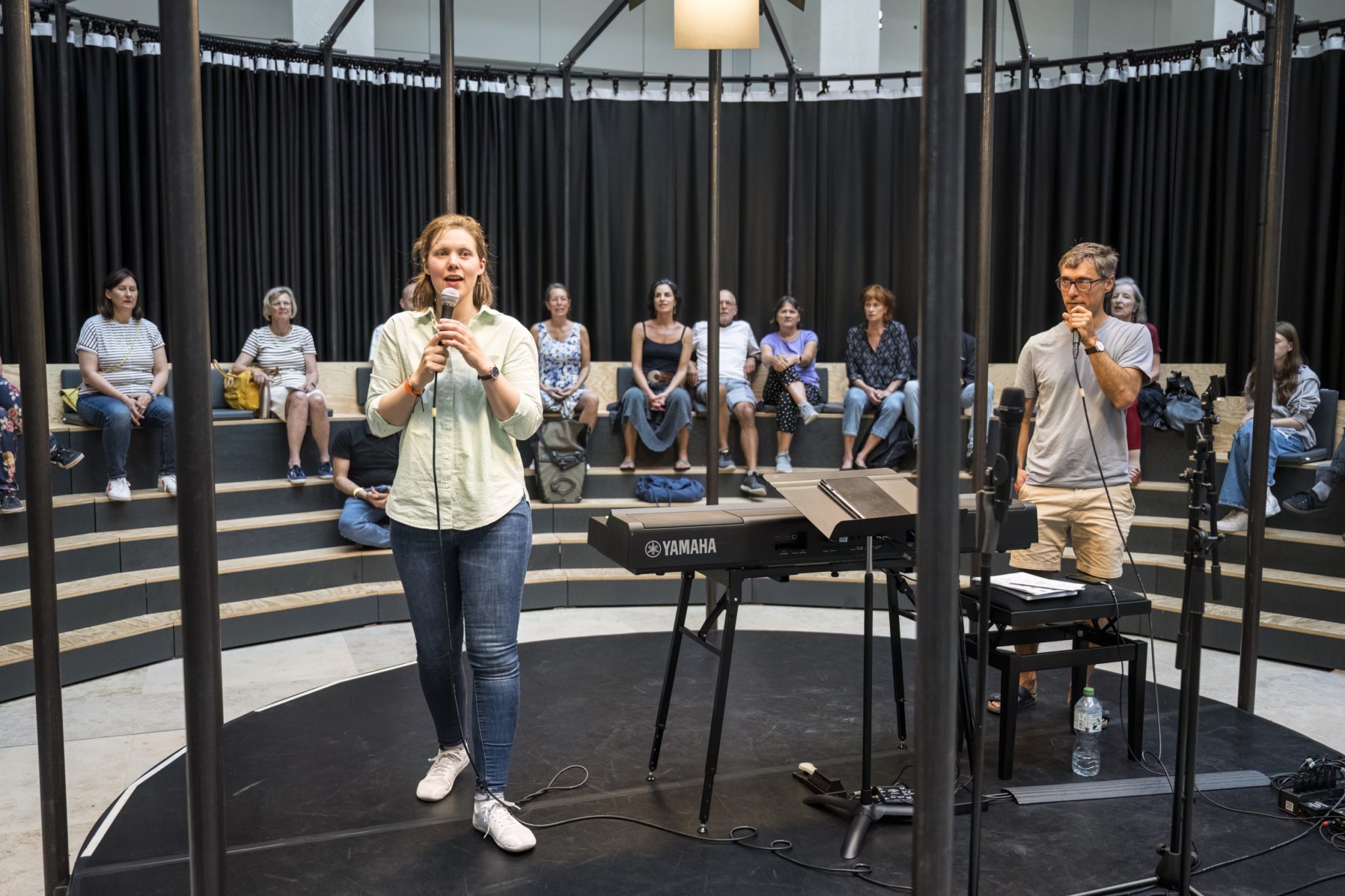 Every human being lives in an instrument that can even walk. The workshop is a musical exploration of this instrument: your own body is musically explored and made to sound. Through rhythm, voice and movement, space and time can be experienced in a new way. Everyone can take part!
